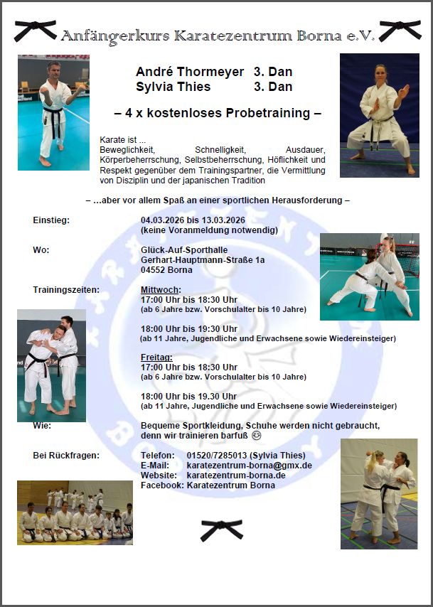 Wir trainieren Goju-Ryu-Karate - jeden Mittwoch und Freitag in der Glück-Auf-Halle in Borna mit Kindern, Jugendlichen und Erwachsenen. Du interessierst dich für mehr? Klick dich durch unsere Website oder melde dich gleich HIER für ein Probetraining an.